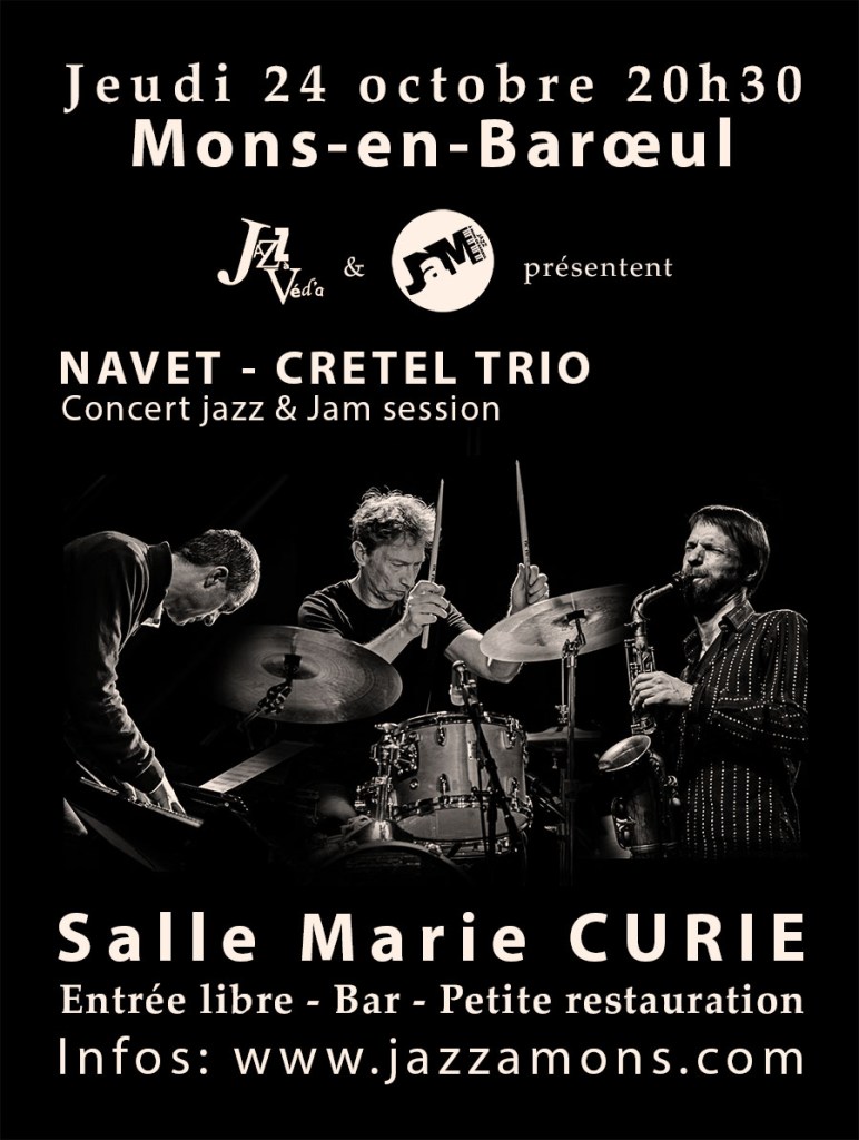 Précédé d’une première partie assurée par le collectif de JàM, le set du Navet-Cretel Trio sera suivi de la jam session, ouverte à tous les musiciens, de tout niveau, dans le respect et l’écoute des autres.